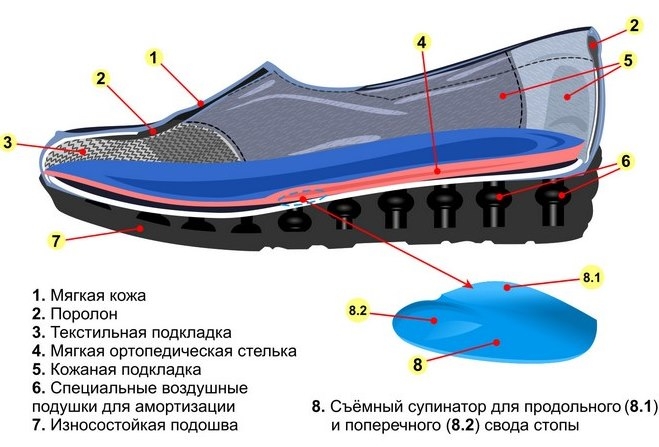 - soft polyurethane sole, which reduces the load on the spine and joints (7);