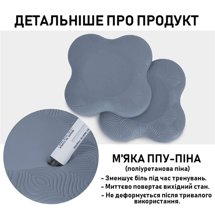 - оптимальний і якісний матеріал - килимок для колін виготовлений з піни TPE, не містить ПВХ і латекс, має антиковзну поверхню і високу амортизацію;