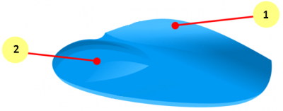 - знімна устілка з супінатором поздовжнього (1) і поперечного (2) зводу стопи;