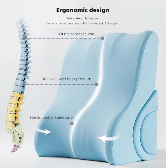 - Забезпечує підтримку шийного відділу, зменшує тиск на нижню частину спини та підтримує поперековий відділ.
