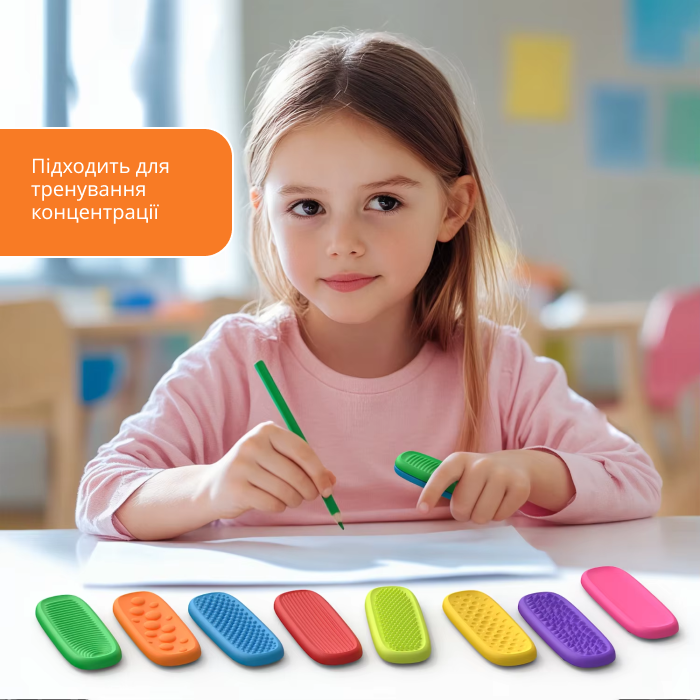 - Стимулює тактильне відчуття та покращує фокусування