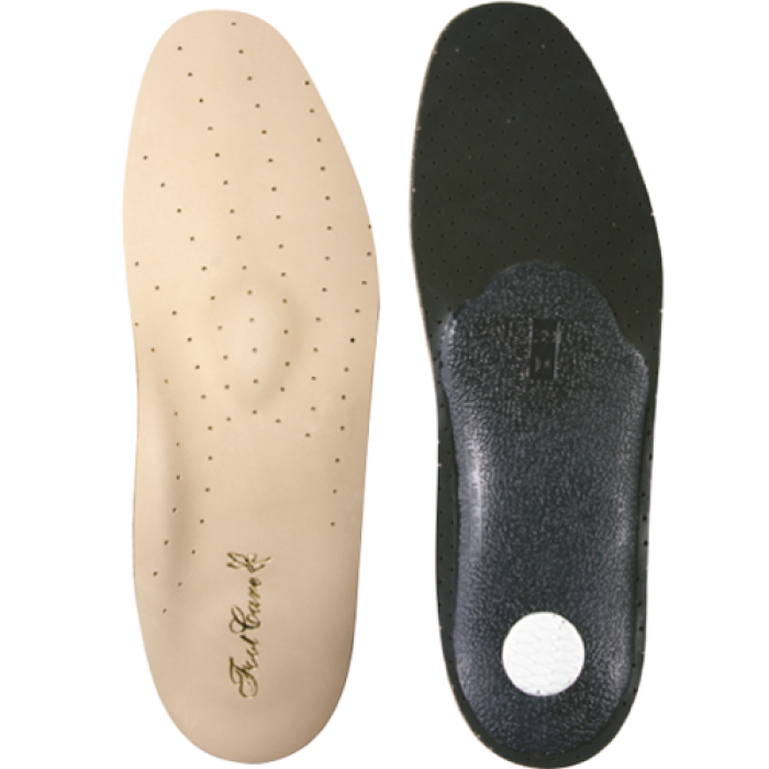 Опис: профілактичні шкіряні устілки з пластиковим супінатором для підтримки поздовжнього склепіння та підйомом для профілактики поперечної плоскої стопи. Пластиковий каркас рівномірно розподіляє навантаження на стопу. Устілки зменшують втому й біль у ногах, викликану комбінованою плоскостопістю. Еластичний амортизатор під п'ятою призначений для зменшення ударного навантаження на п'яту, суглоби ніг і хребет при ходінні. Натуральна шкіра з перфорацією дозволяє стопі дихати та добре поглинає вологу. Антибактеріальна підкладка з активованим вугіллям запобігає розмноженню бактерій і грибків та забезпечує гігієну ніг.
