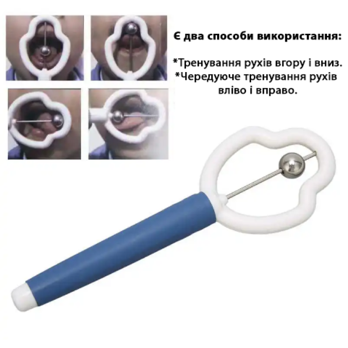 Він складається із зручної ручки та кільця з кулькою в центрі, які допомагають виконувати різні вправи для язика.